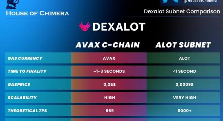 Dexalot:高性能DeFi子网,下图为与C链的对比,按照宣传参数,各方面为C链