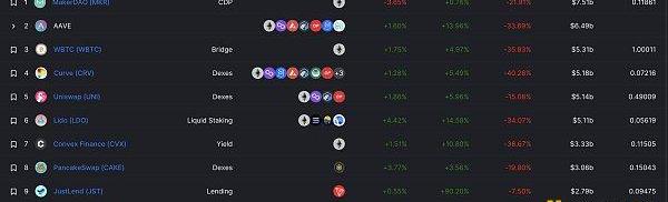 DeFi项目锁定资产前十排名及锁仓量数据来源:defillama