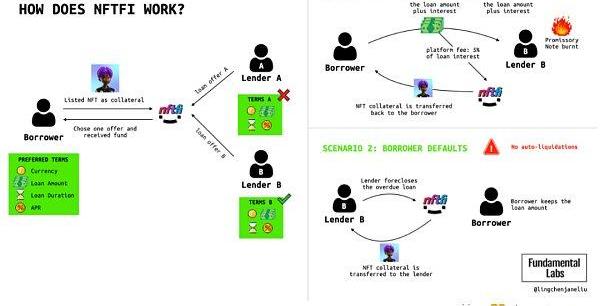 债权人:向借款人提供资金以赚取收益。如果借款人违约,到期后未能偿还资金,贷款人可以获取NFT的所有权,或者从清算的NFT中获得一定比例的资金)
