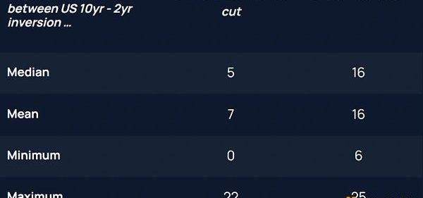 图?6:收益率曲线倒挂与美联储首次政策降息/衰退之间的历史时间分布