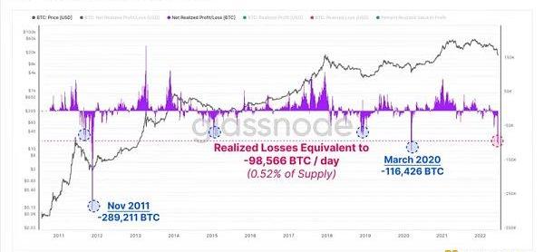 本文我们将用到许多指标,衡量比特币和以太坊持有者的实际受损情况,确定最近的抛售事件和资本“投降事件”的严重程度,并与之前的周期进行比较。作为结论,我们认为?2022?年是数字资产历史上最严重的熊市。