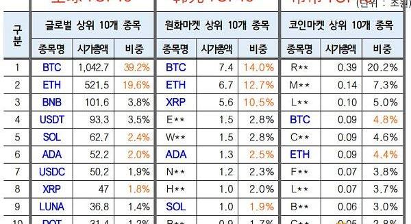 3.与全球市场相比,韩国市场主流虚拟资产占比较低,非主流独立上市虚拟资产投资占比较高;