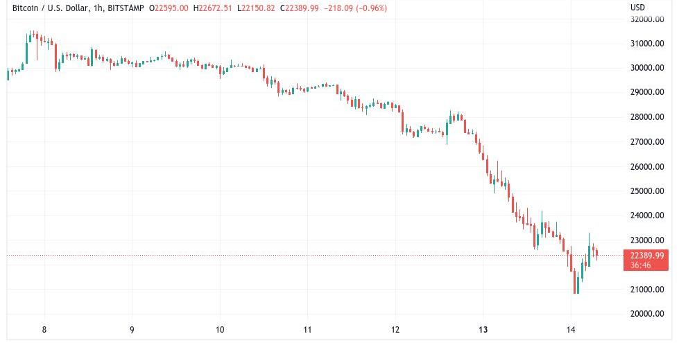 然而,最糟糕的暴跌是为加密货币保留的,因此,从本周初到撰写本文时,BTC/USD下跌了22.4%。