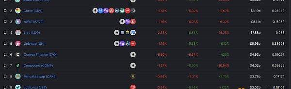 DeFi项目锁定资产前十排名及锁仓量数据来源:defillama