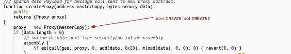 不幸的是,在使用这个较旧的工厂合约时,GnosisSafeUI有时会使用createProxy函数,该函数通过CREATE而不是CREATE2创建多重签名。与CREATE2不同,通过CREATE创建的合约地址不是基于用于创建合约的代码,而仅基于创建者地址的nonce。这意味着攻击者可以将旧的Safe工厂部署到Optimism并开始重新触发createProxy函数以在L2上创建多重签名。