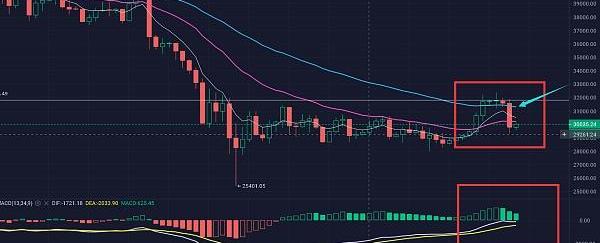 目前整个市场走势还是不大理想,漂亮国时间跌,亚洲时间涨回来,是当下比较常见的形态走势,大饼昨晚既然跌破了30000大关,今晚周四,明天周五,持续关注美股,大级别16小时的反抽,要段时间内实现V返是不抱太大希望的。建议逢高看空。
