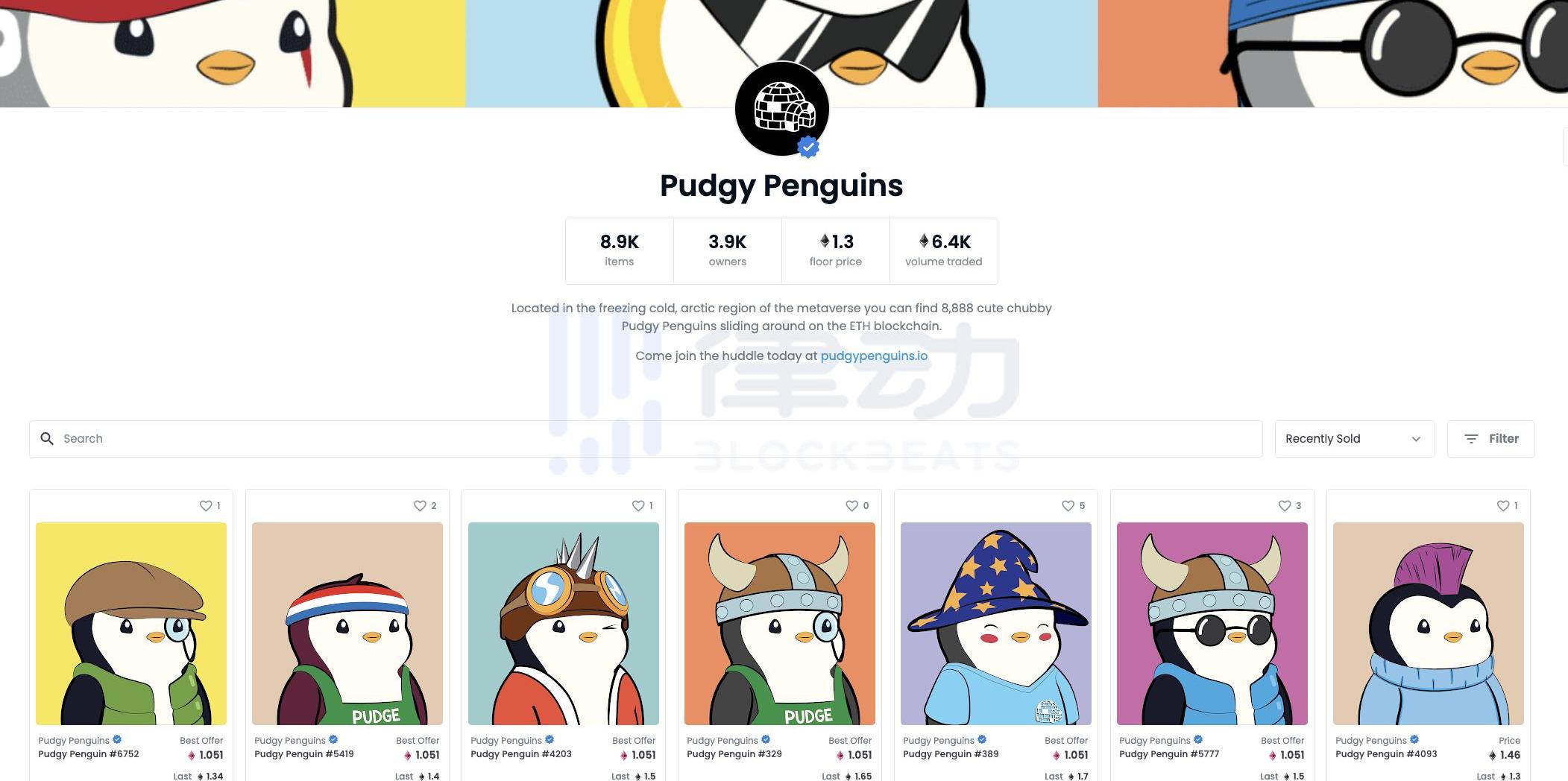这里所谓的中心化存储,便是将元数据存储到一个中心化的网站服务器里,并在元数据中保存指向该网址的链接。下面以这两天爆火的小企鹅项目为例。