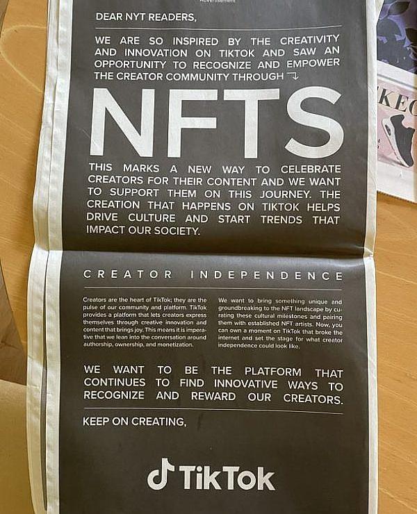 作为全球最流行的短视频应用之一,TikTok早在去年10月就推出了首个由创作者主导的NFT系列—