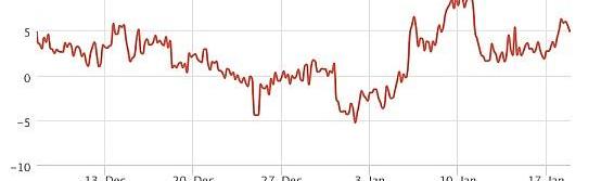 ??根据当前的指标,期权交易者是中性的。然而,在1月10日,该指标触及8%的正阈值,表明温和看跌。