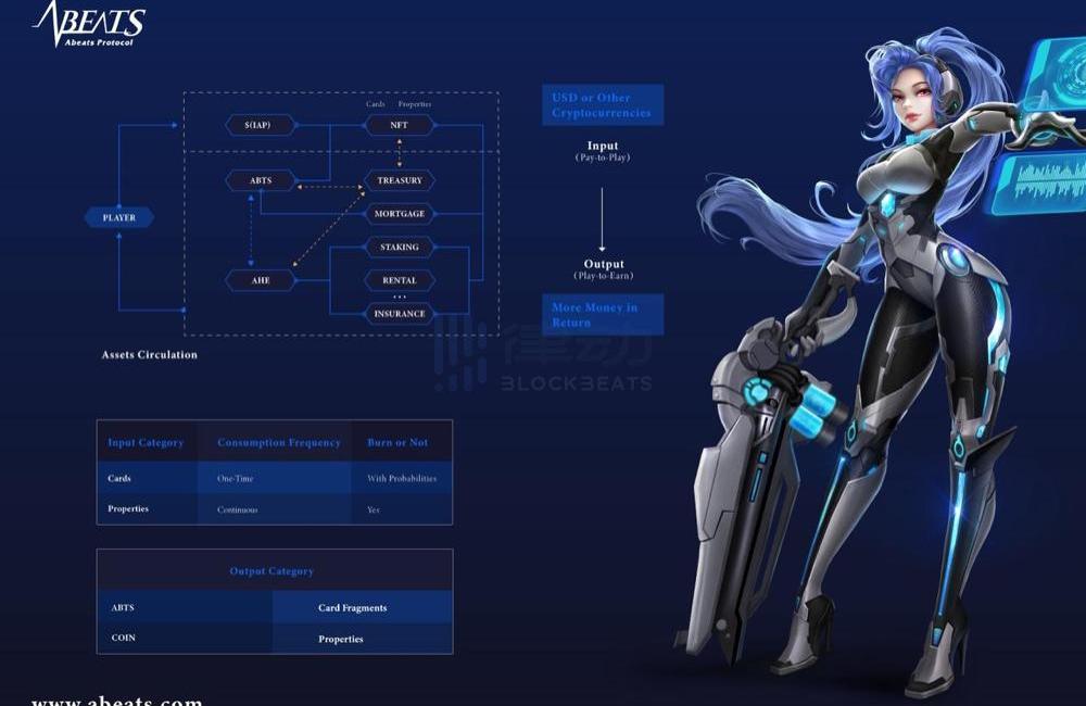 AbeatsGame的Token设计则分为平台治理TokenABTS和游戏TokenAHE。ABTS可用于激励玩家在游戏战斗等任务中赚取并获得对于社区的治理权,进而强化了用户粘性以及增加玩家在游戏中的经济消耗。并且,复合型Token模式还可通过资源整合实现游戏生态自我的调整,以降低二级市场对于游戏的影响,增加游戏内经济系统的稳定。