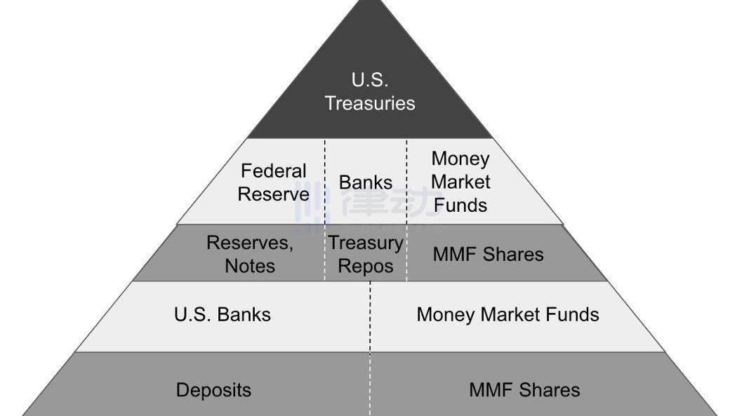 Bhatia的精彩著作非常优雅地概述了货币的层次结构:金字塔顶端是黄金和美国国债。他进一步指出,bitcoin(有意被设计为黄金)可以取代黄金的地位,或者,如果美国财政部处于这个金字塔的顶端,银行将能够发行由bitcoin本身支持的新形式的货币。