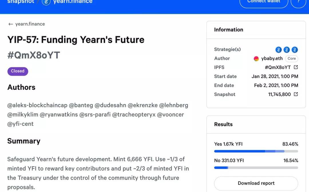 Yearn.finance提案的快照页面