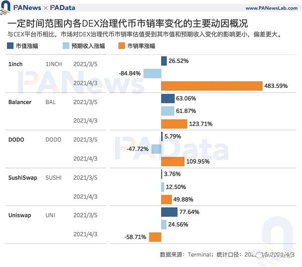 市场对CEX平台币的估值变化不敏感,对DEX治理代币的估值偏差较大
