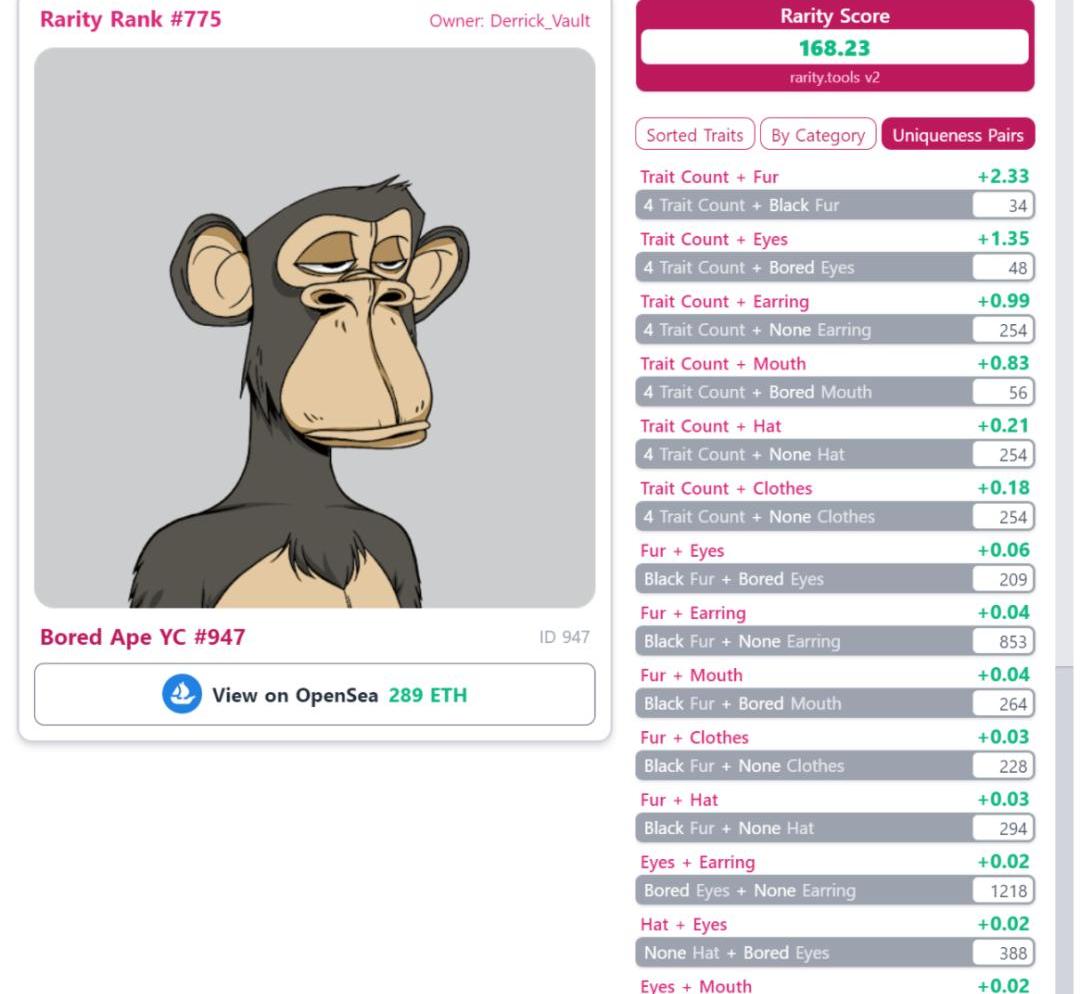 图4:Rarity.tools针对BAYC#947的稀有度评分细节
