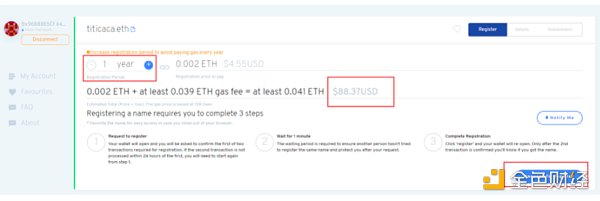 选择你域名购买的年费,会对应显示出价格(年费+GAS费),确认后就可以付款了
