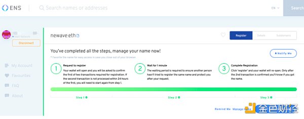 最后你就拥有了尊贵的以太坊域名了!