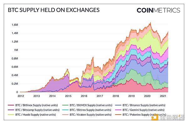 96.?目前至少有149万BTC被持有在主要中心化交易所(不包括Coinbase)。