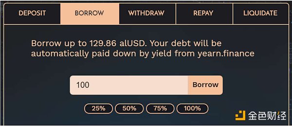 在该协议中,你能获得的贷款金额最多高达DAI存款的一半。例如,你存入1000个DAI就可以借到500?alUSD。然后,存入的DAI会放入yield?farm中产生收益,随着时间的推移,你的alUSD债务会得到偿还。
