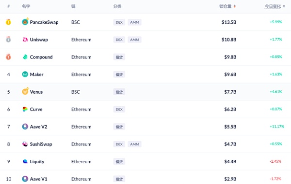 TVL前十协议中借贷应用占到6个