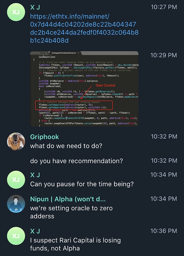临时建立起来的作战室持续工作到再三确认重启 Alpha Homora 协议后,与其交互的 Rari Capital 不会再有任何潜在的问题。