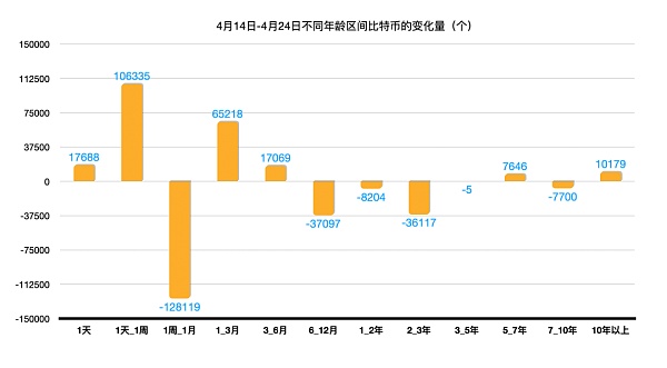 下图是4-13日-4月124日不同年龄区间比特币的变化量: