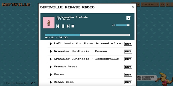 Rehab 和社区项目 Defiville 合作,为后者虚拟挖矿农场上自动贩卖机上供应原创的 NFT 音乐作品,Defiville 的用户可在自动贩卖机上购买量贩 NFT 音乐,为 Rehab 出品的音乐作品提供一种新的销售渠道,此外,这种自动贩卖机也是一种专门的 NFT 音乐播放器,默认情况下,只有某件音乐 NFT 持有者才可以通过该播放器播放和聆听音乐,对于 Rehab 中购买 / 兑换了音乐 NFT 的早期用户来说,这是一种全新的体验,而这种体验为 NFT 音乐作品持有者独有,这让购买和持有一件 NFT 音乐作品变得有了意义。