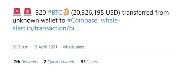 液态网络的高度隐私性为交易者带来了重要好处。由于链上分析使其他人意识到了比特币区块链上资金的大量流动(请参见下面的“whale alert”示例),因此市场可以提前做出反应致使价格发生改变,交易者可能会没有办法在合适的价格进行交易。由于液态网络的隐私性,交易者可以进行交易而不用担心其他用户提前做出反应。