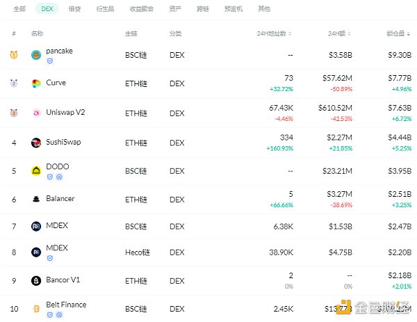 过去24小时去中心化交易所的交易量数据来源:Debank