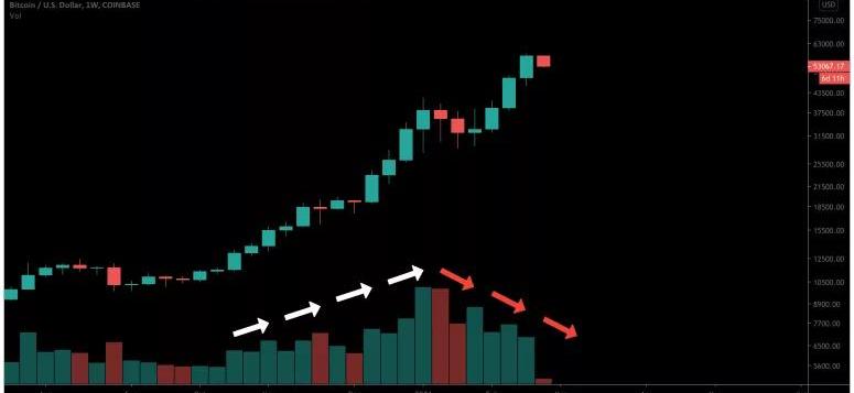在Coinbase的BTC周线图上,我们可以看到自1月4日价格达到42000美元以来,交易量就已经减少。