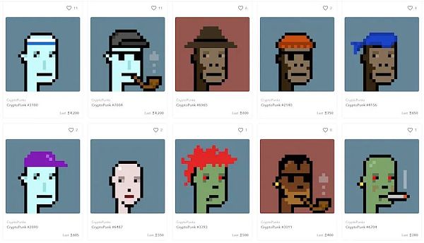 一切都缘起于2017年的加密朋克(CryptoPunks),这是一套发布在基于以太坊的区块链上的数字资产集合,共有10000幅各不一样的作品。具体而言,每一幅都是受伦敦朋克场景启发的古怪肖像,且都是24x24的8比特式像素作品。