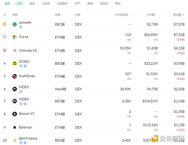 过去24小时去中心化交易所的交易量数据来源:Debank