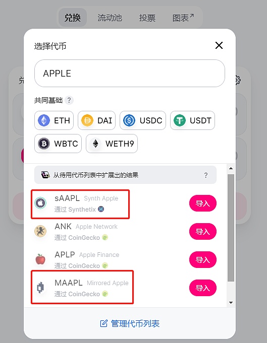 就像现在,你可以去 Uniswap 连接你的以太坊钱包,用它来交易一个追踪苹果股票价格的代币 (比如 DeFi 衍生品协议 Synthetix 推出的 sAAPL)。