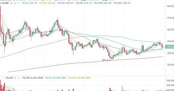 BCH:币价趋势依旧是好的,币价仍旧受到均线的压制,后市突破后会有更大的空间,第一支撑位420.5,第二支撑位401.64,第一压力位434,第二压力位448,建议420.5以上继续持币,跌破减仓部分回踩401.64附近企稳接回。