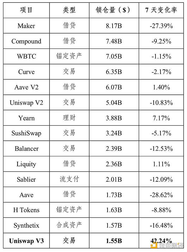 表 1:主要 DeFi 项目的锁仓量(数据来源:oklink,2021 年 5 月 28 日)