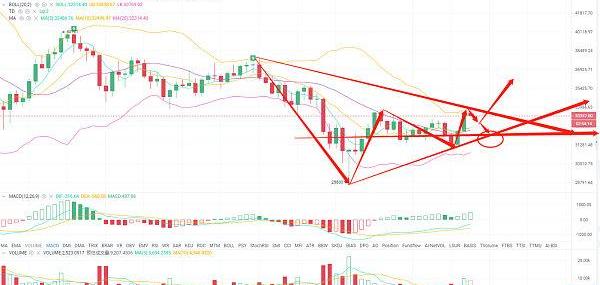 先关注前期上方33800高点测压,不破不立,日内先空下去确认支撑,底部确定后再看反弹多,参考34000/33800空,目标看32500,支撑不破再来多