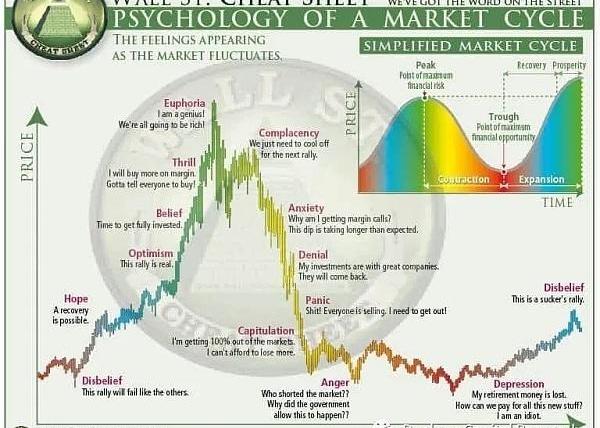 通常可悲的是,这是大部分人亏损结束离场,不过主要是市场时段会横盘,成交量相对较低。这是市场孤寂的时期,没有人在意,也没有新的人进入多少市场。这就是真正考验的人,聪明的现金流开始建仓,逢低重新审视一切。在第八阶段结束后,欢迎来到第一阶段-希望。一轮又一轮开始了,新的投资者又诞生了。总的来说,这些步骤往往是重复的,形成一个市场周期。并非每个周期都一样,价格总不是这样走的。不过上述内容最准确地描述了投资者参与币圈市场投资的心理表现。