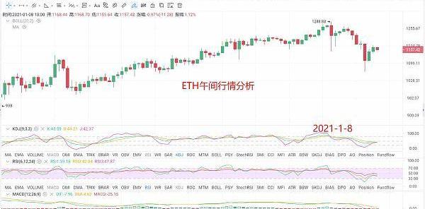 TH午间行情分析:以太坊早间出现了一波深度回调,价格跌破布林轨道,低位触及1063支撑开始反弹上行,多头趋势逐渐浓厚,上行空间逐渐被打开,目前价格处于震荡下行的节奏,若后续行情跌破1050一线企稳下五日线下方,价格还会再次回调。关注下方支撑1050-1045,上方压力位1080-1090.