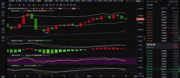 小时级别来看,以太昨日早盘冲高1134.65一线回调,午间进行一波深度回踩跌至975一线触底反弹,一路震荡上涨,截至今日早间6时最高涨至1120一线遇阻回调震荡下行,目前持续在1070附近震荡整理,技术面来看,MACD多头持续缩量,KDJ死叉三线向下发散,短期预计以太有回踩确认支撑的需求,建议反弹进空即可。