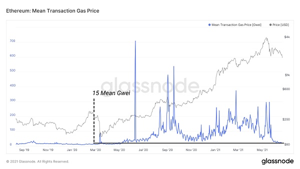 自 2020 年以来,Gas价格已经恢复到DeFi夏季早期的水平,以至于愿意耐心等待的交易员甚至可以在非工作时间支付个位数的Gwei gas费。
