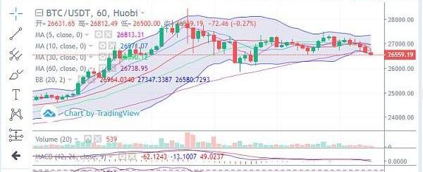 1900/1/1 0:00:00BTC行情分析小时图分析,大饼昨天白盘是横盘震荡,截至今天早间震幅慢慢收窄。目前K线在26800附近运行。技术上布林带缩口走平,K线回到下轨通道内运行.