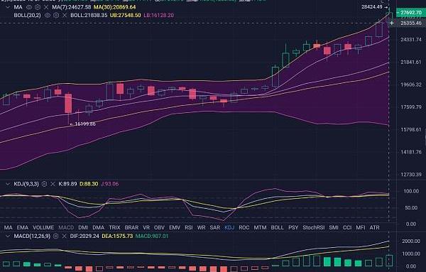 1900/1/1 0:00:00BTC行情分析比特币日K图来看连续四连阳上行底部全部都是触底MA5开始反弹上冲,均线来看还是处于明显的多头趋势在周期和大周期全线看涨,底部MACD阳柱连续三天放量快线DIF继续上行大角度发散.