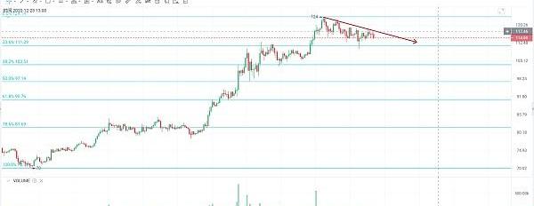 从交易的角度看,最先补涨的LTC已经开始沉寂,如果回调到位,可以做一下波段,毕竟趋势还在。重要支撑位再100—110美金,等待弹簧出现。当然,如果继续突破,还可以继续玩一下。