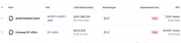 目前,dForce支持香槟塔池、淘金池、奇点池三个池子的DF挖矿,更好地满足了不同资产持有者和不同风险承受能力的用户的需求:
