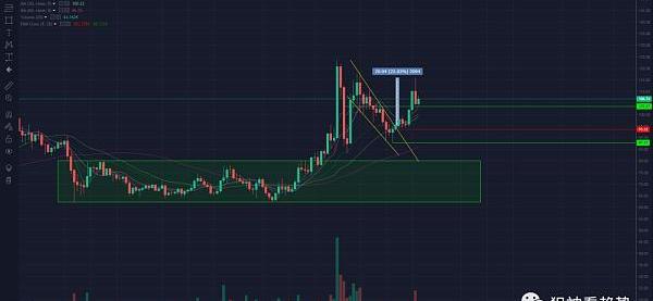 LTC:莱特30分钟是有一个趋势线小破位,小级别可能会有回调,短线没有介入建议暂时不介入,等突破下降趋势线介入,或者回踩5日线介入,长线目标260.今日莱特支撑97,压力110
