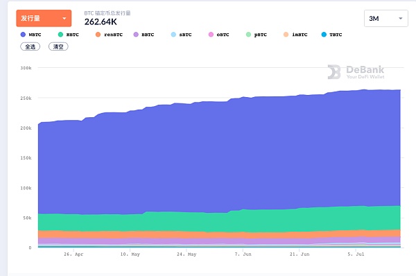 由DeFi的火爆,当下流行的当属加密货币的托管服务类跨链桥,如WBTC、RenBTC、sBTC等,该类BTC锚定币是发行在非比特币网络上的价格锚定于原生比特币的一类特殊代币,用户必须依赖并信任某一组实体来进行该类BCT的挖掘和燃烧,基于该类代币,更好的为DeFi注入充足流动性,获取高回报收益。目前,BTC锚定币总发行量已经超过26万枚。