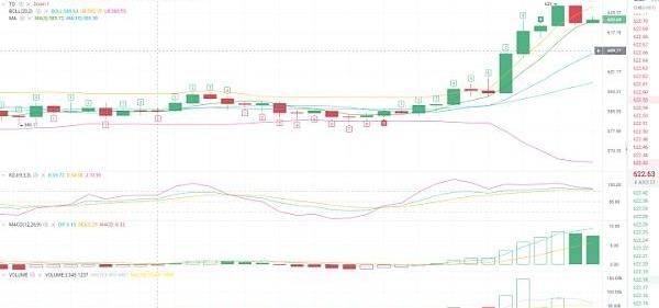 ??1小时图看,以太和大饼走势基本一样,行情就不在解析。说明以太和大饼联动性强。所以走势和大饼一样,一样看多,而且大饼破新高了,以太能不破个新高、?目前在622位置。回落到615附近多单进场?目标635-645?止损609