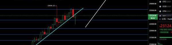 上涨无法去预测顶部,更何况没有参考性的顶部,就好像红了眼的牛,拉不住但是它会自己停下来。试探性预测25,870美元或许会成为一定阻力的压力位,或许也不会到达!一切可能性的盘面,边走边看,不仅要防止自己踏空,更要防范机构在高位的抛售利空,有些人可以走在牛前面,但有些人却走在了牛上面。对于短期走势来看,一小时图中的上升趋势线跌破,回调整理大势已定,若22,180美元未能有效支撑,那么比特币价格可能会继续向21,300美元试探。