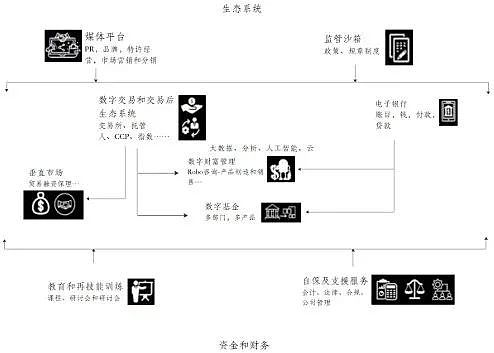 数字资产生态需要媒体、交易所、托管、垂直市场、教育、自保及支援服务、会计、法律、合规、公司管理、数字中心、电子银行、大数据中心等,整个这些生态都建立起来才能做数字资产。