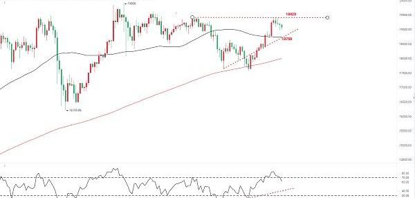 相反,如果价格再次从当前水平急剧下跌并跌至17500美元以下,则可能表明短期顶部已经到位,这样的举动可能会将价格拉低至下一个支撑位16191美元。