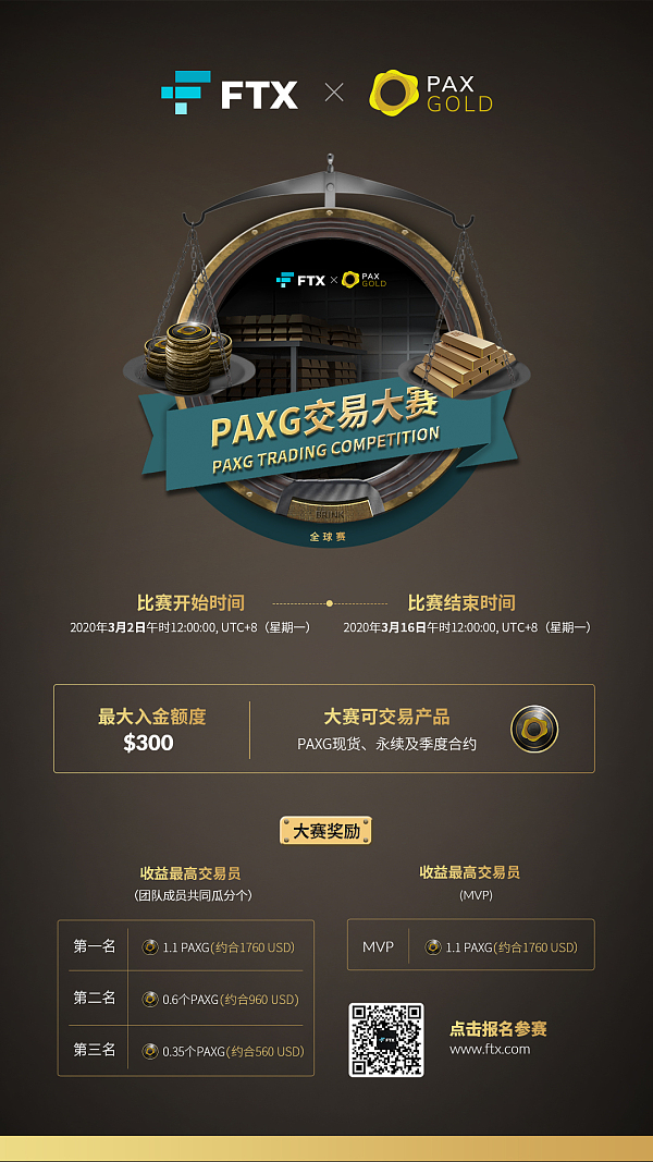 大赛现已正式开启报名通道,请点击https://ftx.com/competitions/ftx-paxg 进行报名,或扫描图片下方二维码!我们期待您的参与!